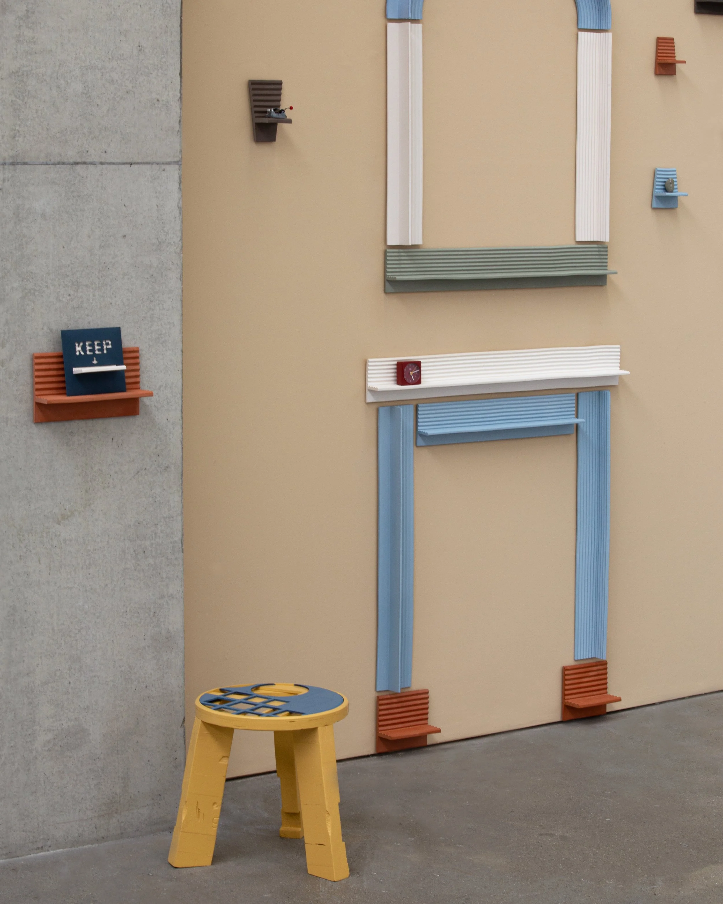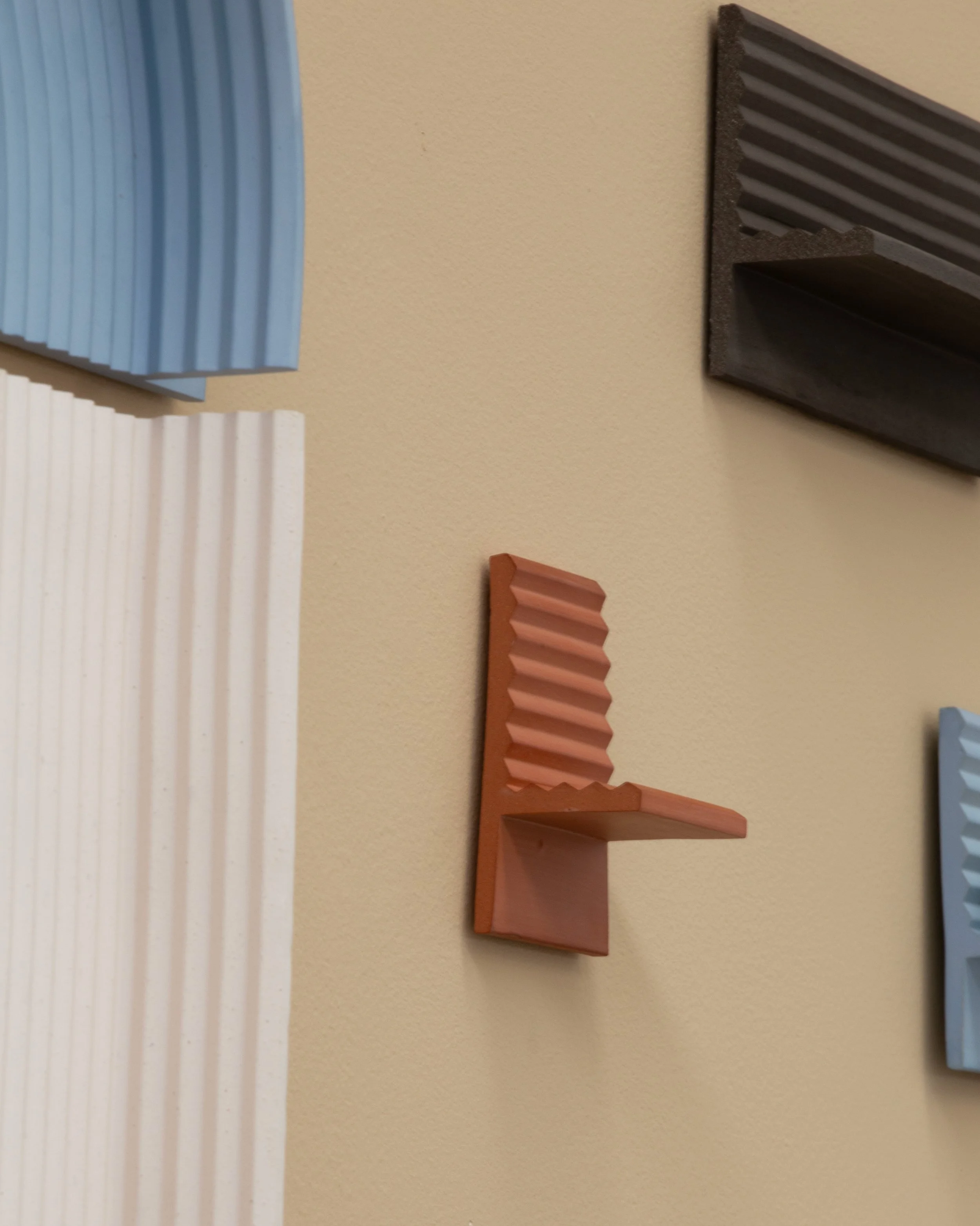 Mounted easily on the wall with custom metal brackets, a family of coloured shapes and sizes make up the range. KEEP is for the thing(s) that you don’t know where to put.